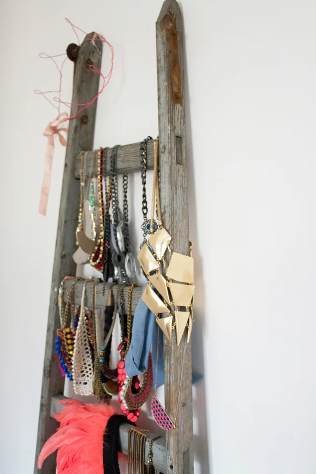 8. Une échelle en guise de présentoir à bijoux